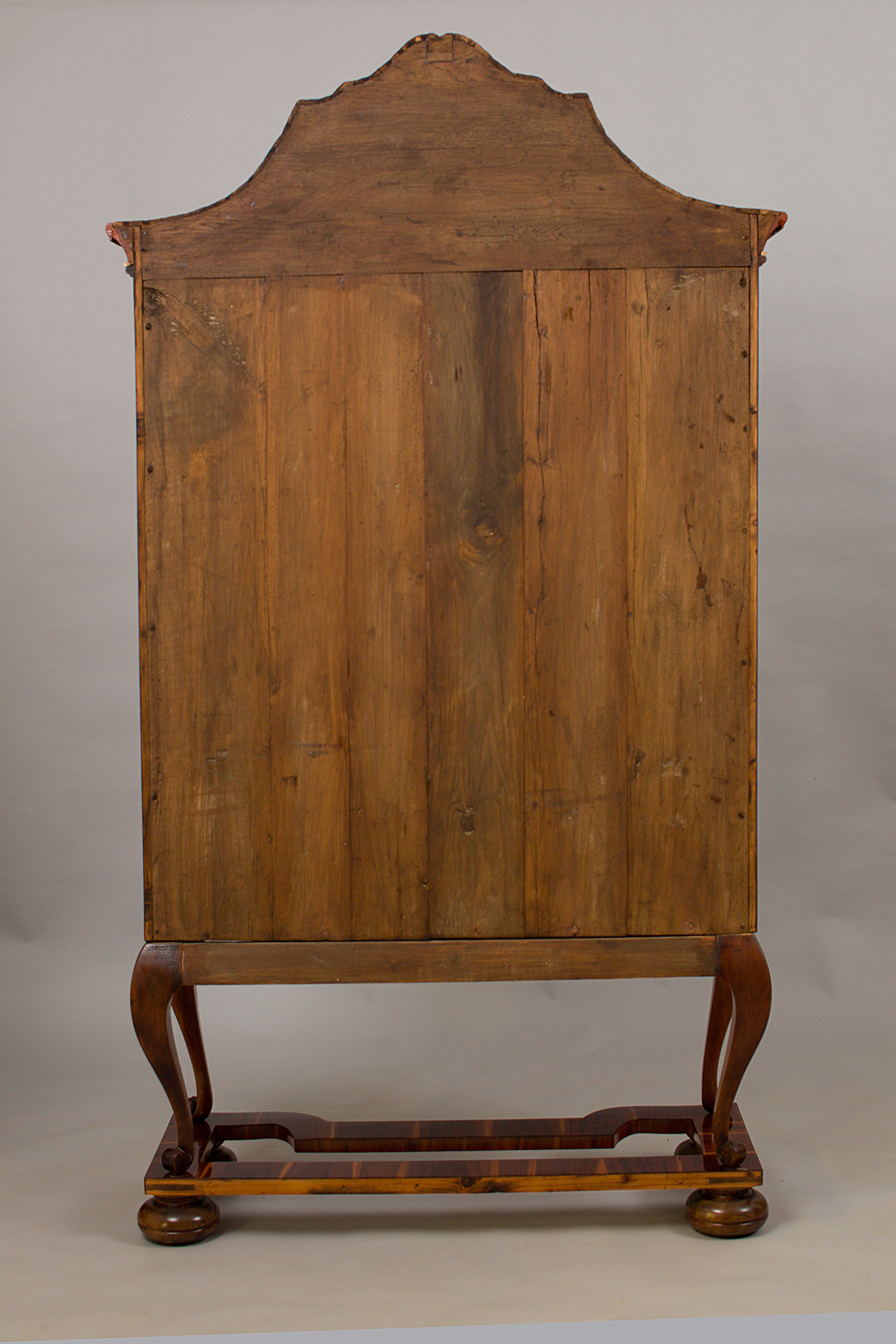 Jedná se o velice kvalitní knihovnu zhotovenou v pozdním baroku a to okolo roku 1800-1850. Knihovna má smrkový korpus se silnou dýhou (4 mm). Korpus je dýhovaný a intarzovaný švestkou, topolovou kořenicí a dubem bahením. Kování je mosazné. Zámky jsou ručně kované, povrchová úprava je ruční šelaková politůra. Jedná se o nábytek s dlouhou životností, který nabývá na hodnotě.
